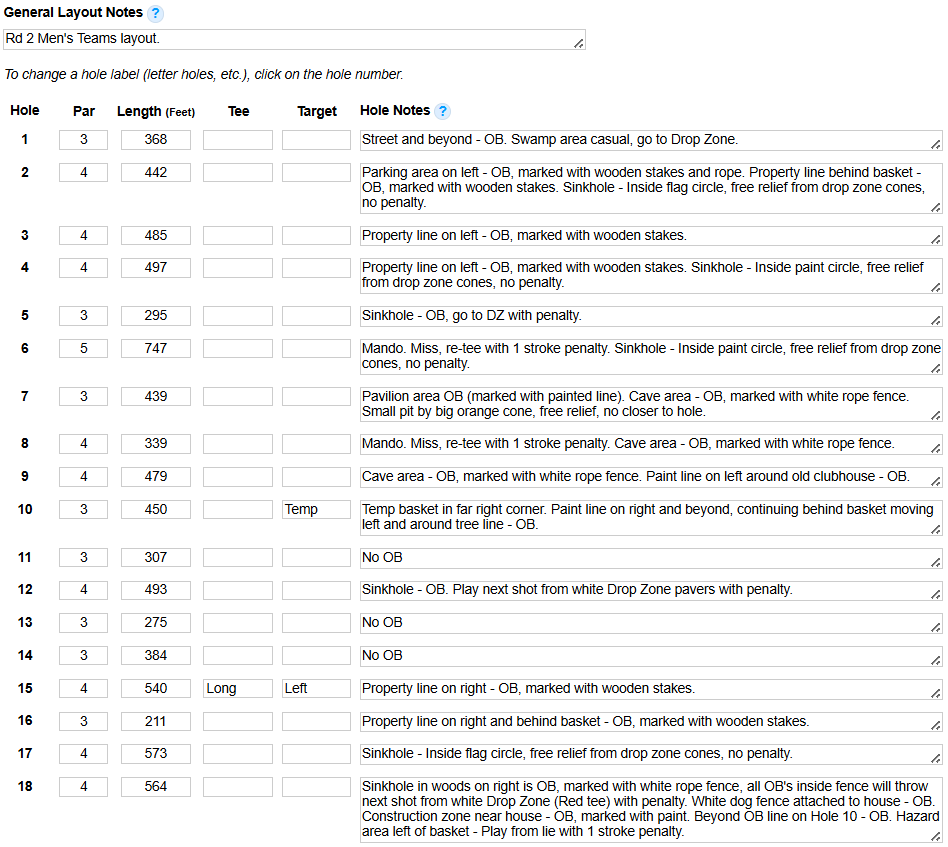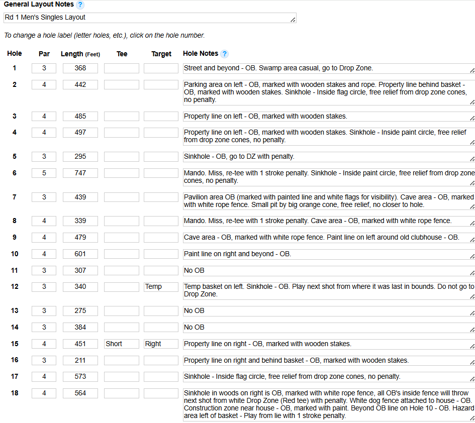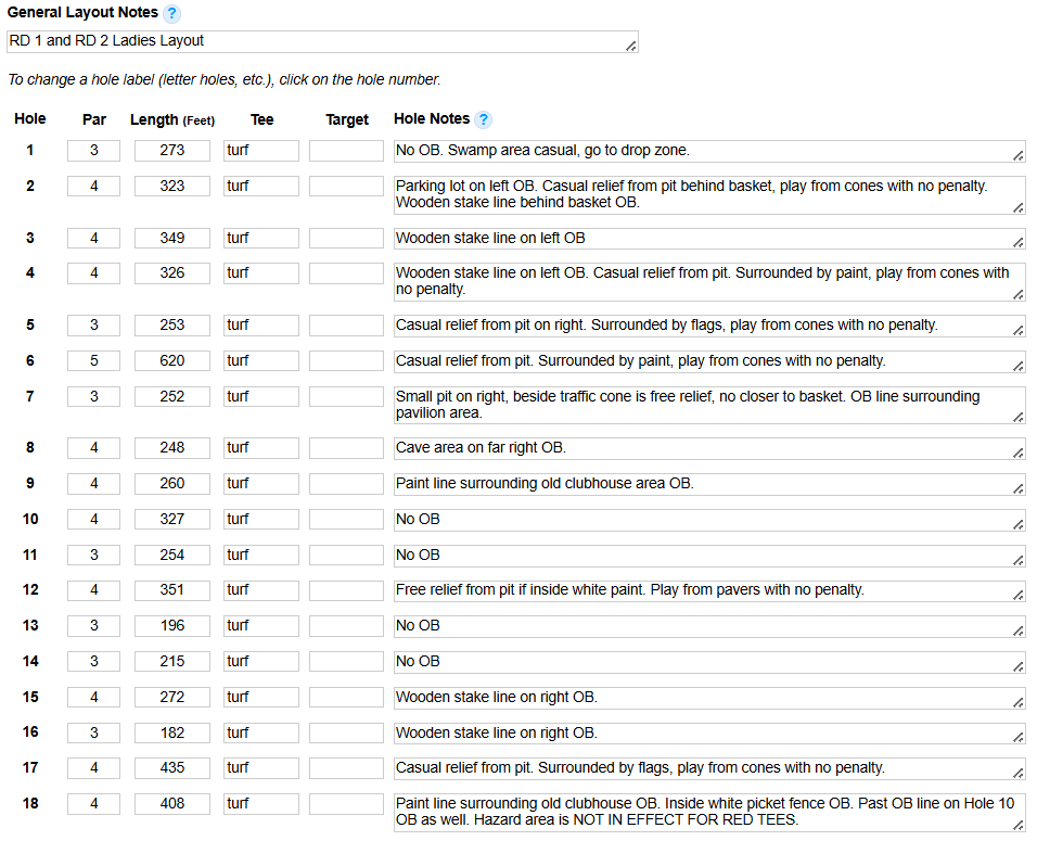 Warriors Path OG 27 Hole Layout – OB’s & Ground Rules